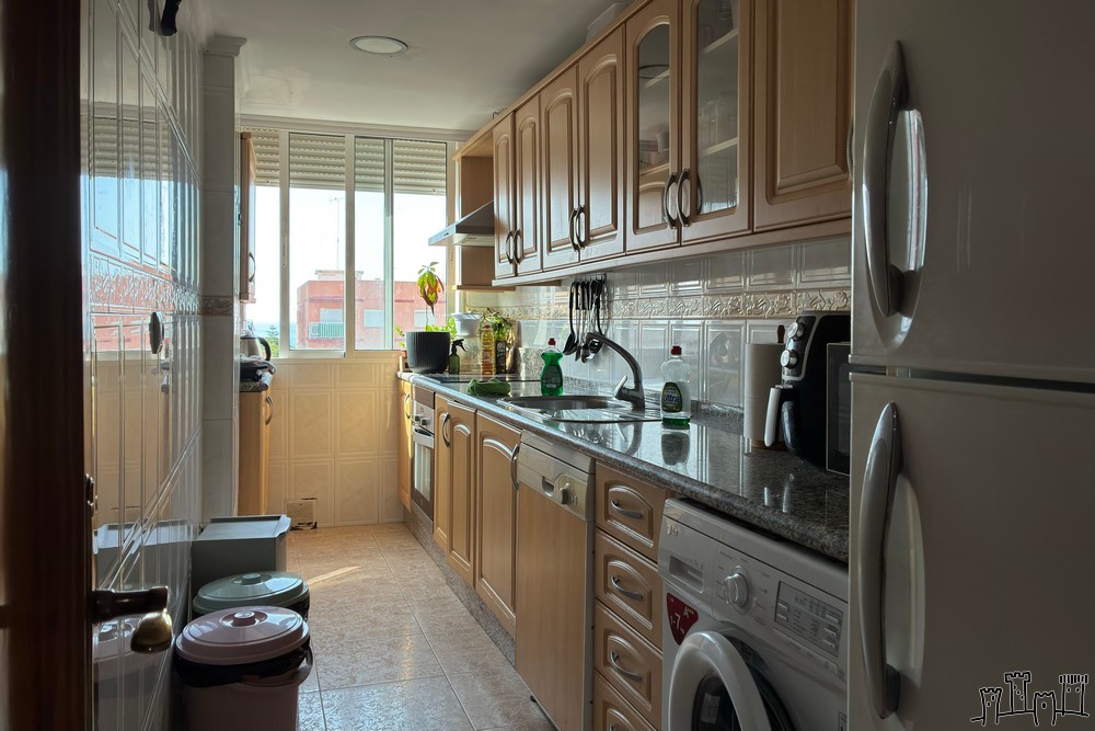 Piso de 91 m² muy luminoso, para entrar a vivir, a dos minutos andando de la playa. Quinta planta, con dos baños, dos dormitorios, salón, cocina y terraza cerrada. Es una esquina con vistas al mar.